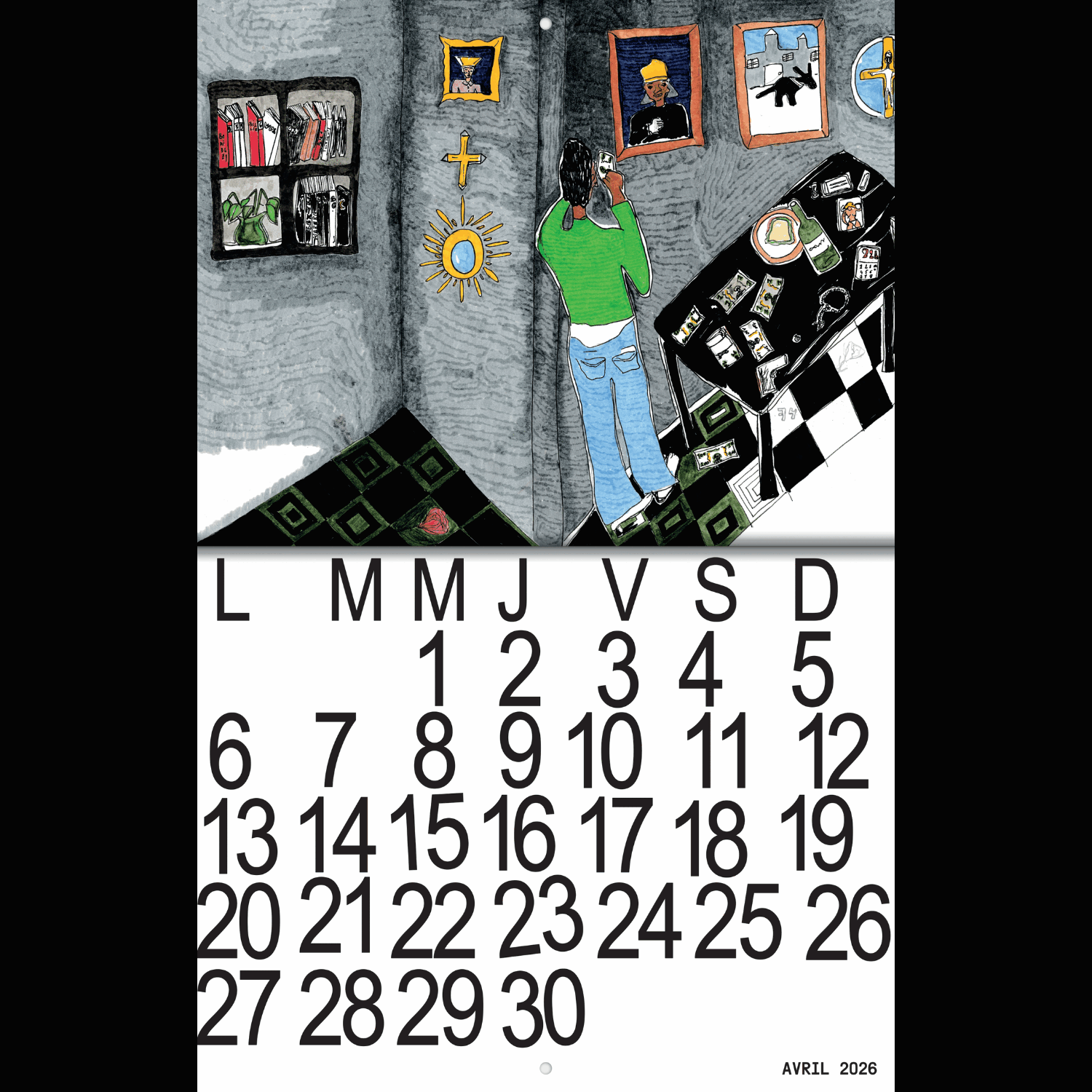 - Calendrier 2026 - 28 pages, format fermé : 23,5 × 30 cm et format ouvert : 47 × 30 cm - papier : 235 g/m² - 90 g/m²
